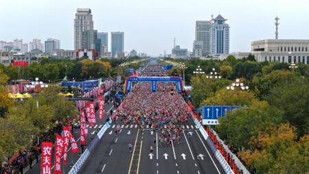 【東営(中国)2025年10月22日新華社=共同通信JBN】China Wanda(中国万達集団)の2025年Yellow River Estuary (Dongying) Marathon & Shandong Marathon League (Dongying)(黄河河口(東営)マラソン&山東マラソンリーグ(東営)が10月19日、東営に出場者3万5000人近くを集めてワクワクするスタートを切りました。