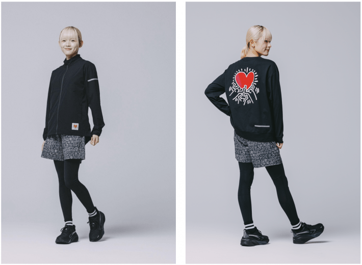 秋冬のレイヤリングにも対応できる設計で、春夏のコレクションから継続して販売されるアイテムもあります。キースヘリングのグラフィックを大胆にあしらったデザインは、ランニング時はもちろん秋冬のタウンユースとしても活躍します。