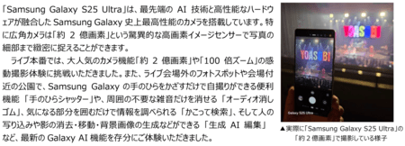 Q.「Samsung Galaxy S25 Ultra」でライブの思い出を美しく写真に残し、ライブ中だけでなくライブ後も思い出に浸っていただけますが、この点についてはいかがでしょうか?