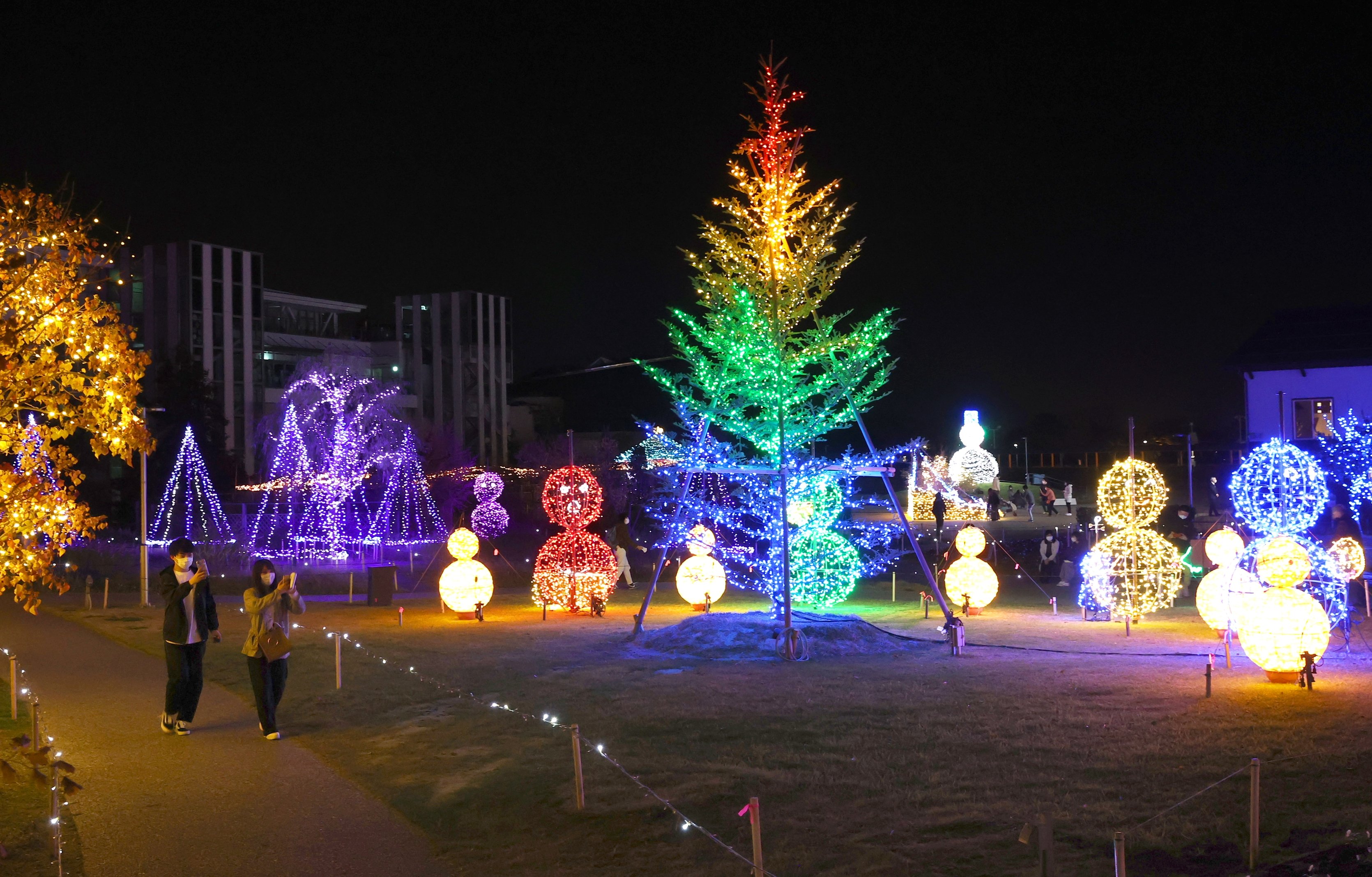 [詳しくはこちら]光に包まれ平和へ祈り♪ 朱鷺メッセ周辺でイルミネーション点灯、遊歩道鮮やかに
