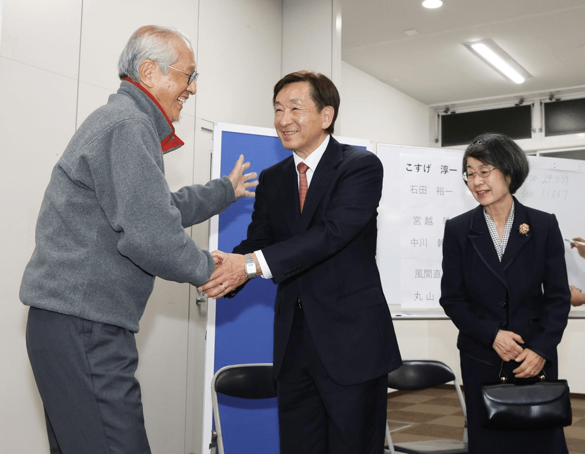 小菅氏は「本当にありがとうございます。その言葉しかありません。(当選は)嬉しいが、責務を考えると身が引き締まる思いです。本当にありがとうございます」とあいさつしました。