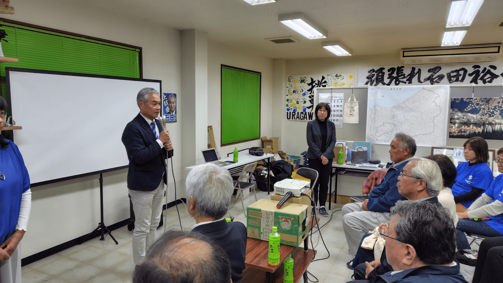開票結果を受け、石田氏は「私の力のなさでこのような結果となった」と敗戦の弁を述べ、支持者に感謝しました。