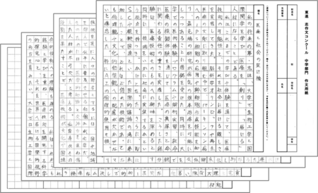 志作文に、全国の東進生が切磋琢磨して前向きに取り組めるよう、東進では毎年「志作文コンクール」を実施しています。中学部門は5回めの実施となり、全国の東進ハイスクール・東進衛星予備校・東進中学NETに通う中学生から、多くの志作文が集まりました。その中から30名の優秀者が決定しました。