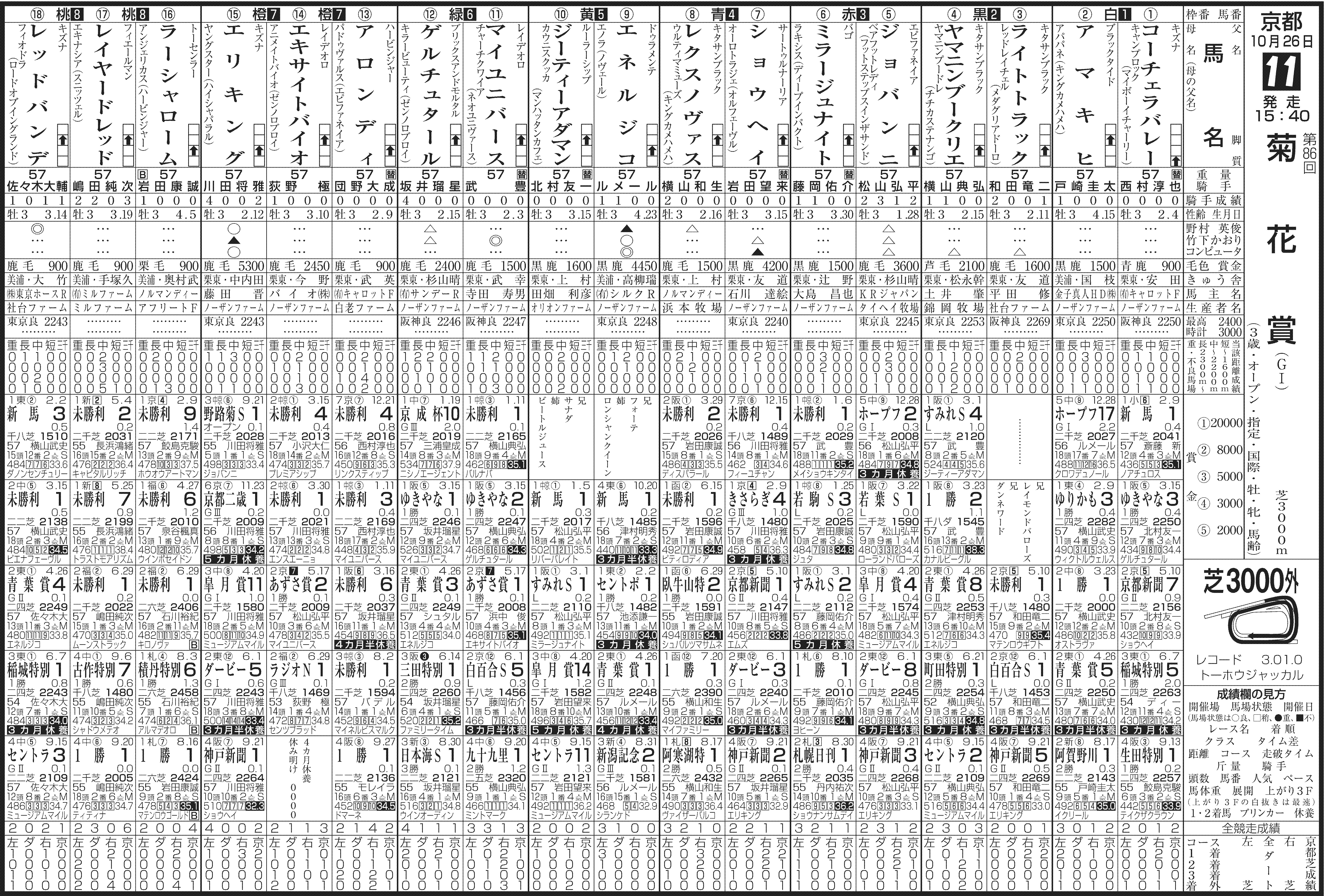 第86回菊花賞(26日・京都11R3000m芝18頭、GⅠ)