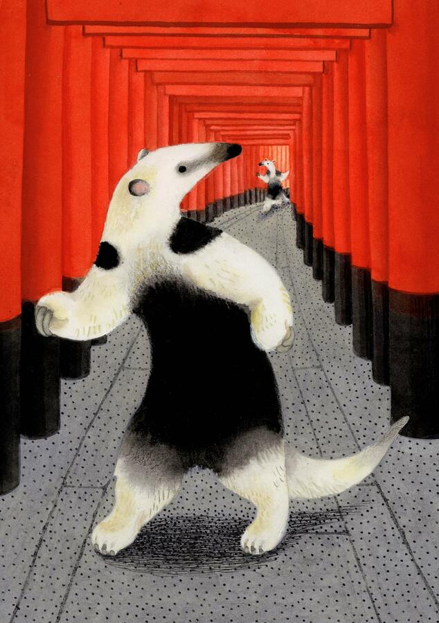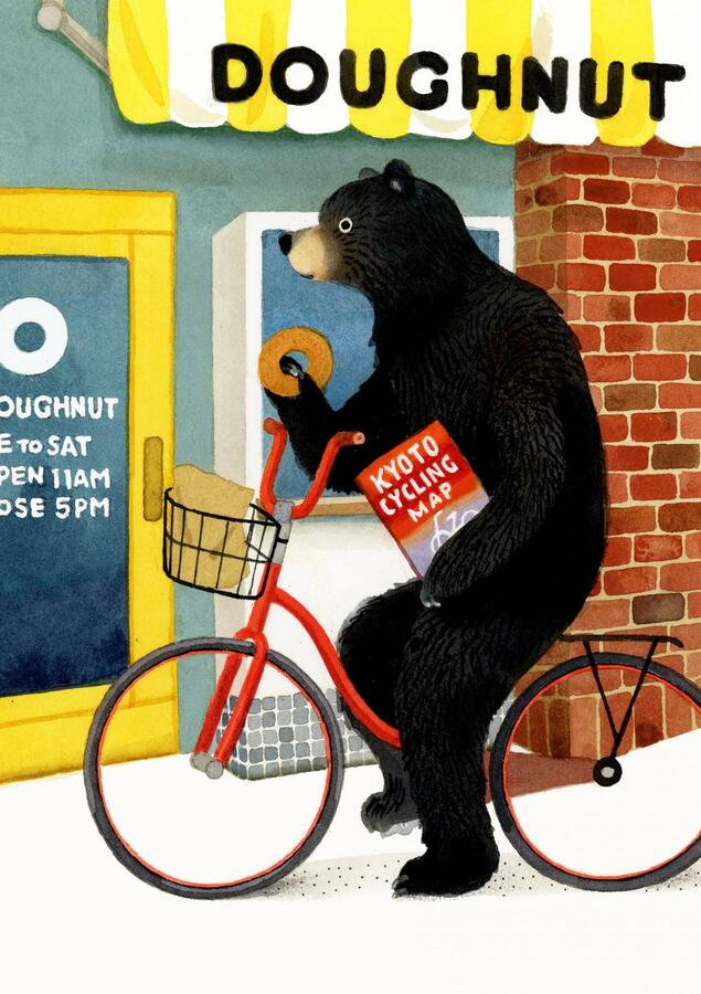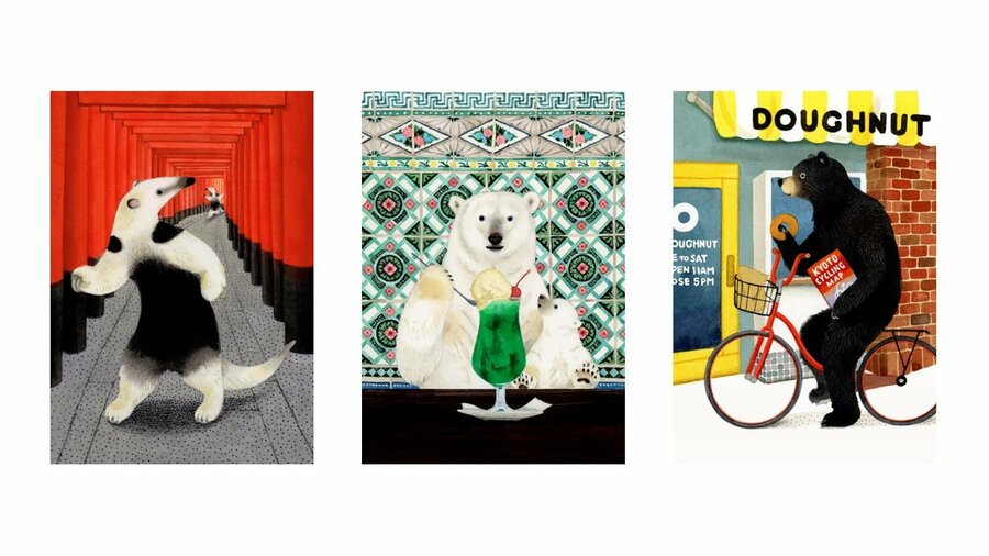 京都 蔦屋書店ではオープン当初から小林マキの描いた「Bookwormシリーズ」のポストカードが好評。擬人化された動物が本を読んでいる様子が愛らしく、海外からの旅行者にも選ばれています。「動物の形、骨格、毛並み、すべてが美しい。それらを見ているとシンプルに生命を感じる」と語る小林の新たなシリーズをこのたび本展で初公開します。「Stroll around Kyoto」では、京都を散歩しながら名所や銘菓を楽しんでいる動物たちの様子を生き生きと描いています。京都らしい店やモチーフは、京都 蔦屋書店のスタッフが推薦した場所や食べ物を参考に制作され、今回小林が取り組んだZINEの中でスケッチやMAPとなり紹介されています。12種類の作品は、すべて原画とジークレープリントにて販売、年の瀬に合わせてカレンダーもご用意しました。