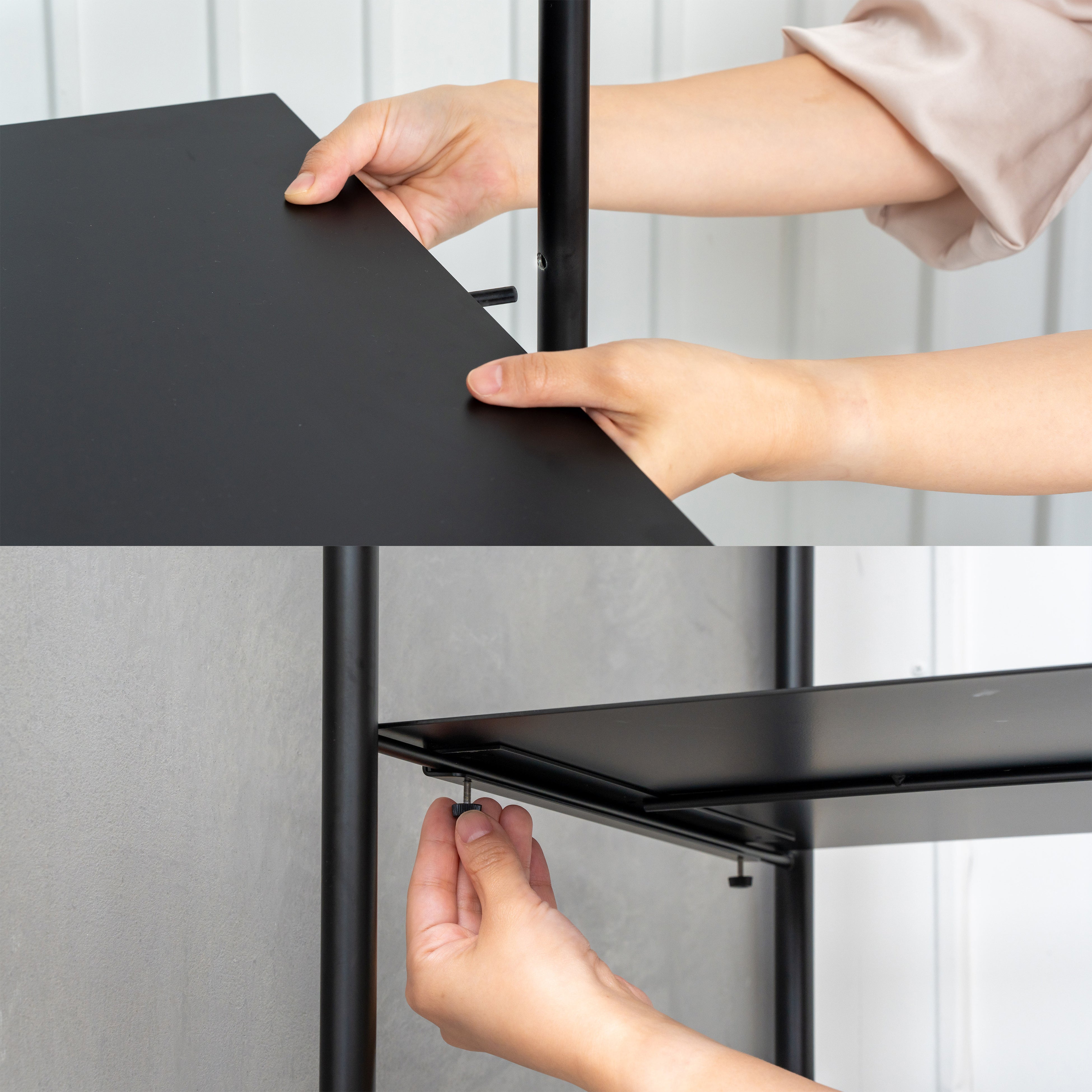棚は突起を差し込み、ねじで固定する可動式になっているので、自動ごみ収集機能付きのような高さのあるロボット掃除機など様々なサイズに対応できます。