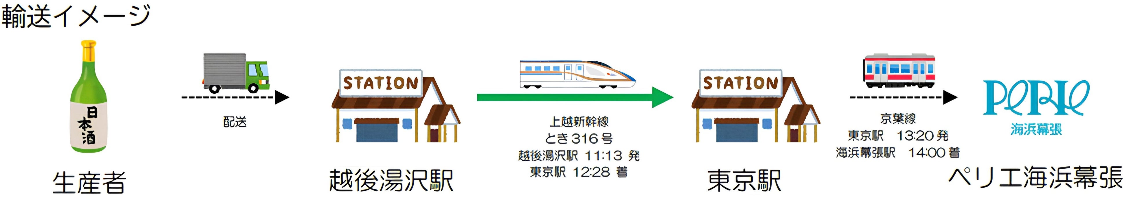 ○ また、11月7日(金)には、JR東日本グループが展開している即日お届け列車便「はこビュン」を活用し、白瀧酒造(株)で朝詰めしたフレッシュな日本酒「上善如水 純米吟醸 生酒」を上越新幹線で期間・数量限定で輸送・販売します。