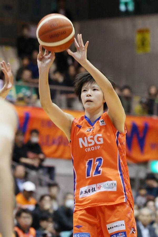 新潟-日立ハイテク 第4クオーター、野坂葵がジャンプシュートを決めて33-68=鳥屋野総合体育館
