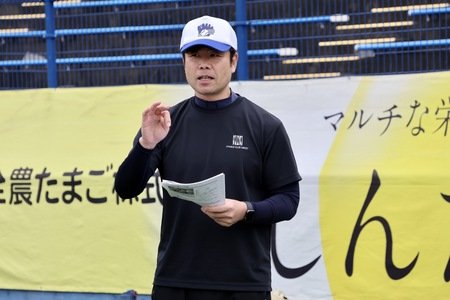 開校式では、中畑講師が「講師からいろいろなことを教わって、最高の一日にしてください」とあいさつ。全農参事の小池克佳は「小学生のうちから良い食習慣を身につけて、体づくりをしてください」、全農群馬県本部長の宮内弘人は「群馬県産農畜産物をたくさん食べて、元気いっぱい野球に打ち込んでください」とあいさつして教室が始まりました。