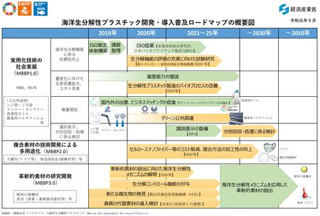 [v] 2019年5月、海洋生分解性プラスチックの普及に向け今後の主な課題と対策の取りまとめとして策定された。NITEバイオテクノロジーセンター(NBRC)は、本ロードマップに基づき未知微生物の探索を行っている。また、海洋生分解性プラスチックの規格・標準化に関する課題の対応として、試験所認定制度の整備も述べられている。NITE認定センターは、NBRCと連携し、生分解性プラスチック試験に関する試験所認定の体制整備を進めてきた。
