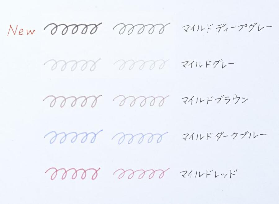 3.マイルドライナーの中から視認性の高い9色に加え、新色「マイルドディープグレー」を加えた全10色で展開します。「マイルドディープグレー」は、視認性の高い濃い目のグレーで、文字書きにおすすめです。
