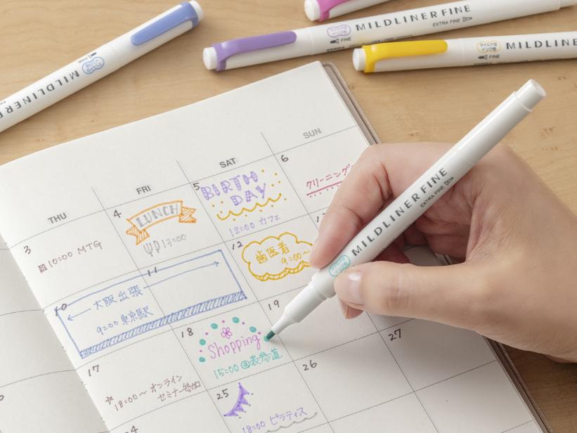 今回発売する『マイルドライナーファイン』は、マイルドライナーの中でも視認性の高い色を中心にラインアップしており、メッセージカードや手帳、メモ書きなど、“書く”と“彩る”の両方を楽しめる1本です。