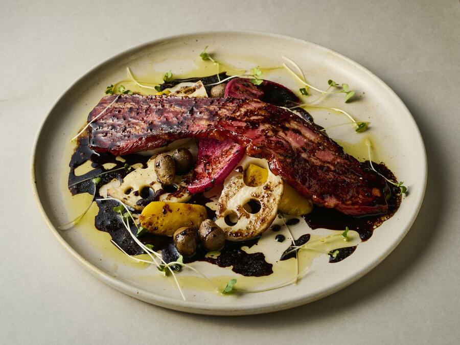 (右)牛タンと旬野菜煮 柚子胡椒風味