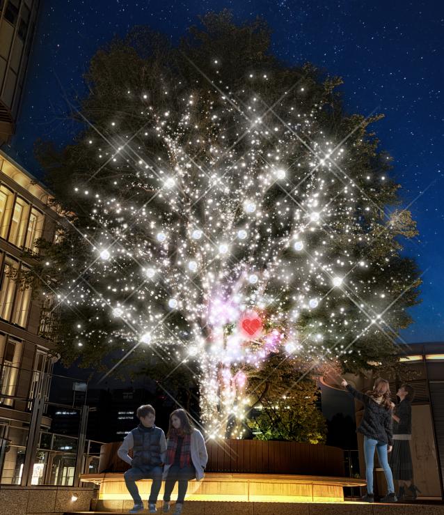 そして、今年は新たなイルミネーションツリーとして日比谷ステップ広場の階段上に「ETERNAL HEART TREE(エターナル・ハート・ツリー)」を、11月13日(木)~2026年2月15日(日)の期間で初開催します。冬の静かな気配を感じさせるカツラの木に、白銀に輝くイルミネーションと赤いハートのオーナメントをひとつだけ飾り、心に灯る愛の心のような静けさをイメージしました。 “永遠の心の木”と名付けた特別なツリーの前で、大切な人と想いを重ねてみてください。