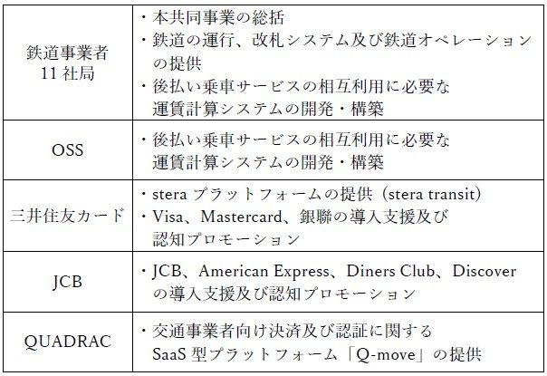 鉄道事業者11社局(小田急電鉄株式会社、株式会社小田急箱根、京王電鉄株式会社、京浜急行電鉄株式会社、相模鉄道株式会社、西武鉄道株式会社、東急電鉄株式会社、東京地下鉄株式会社、東京都交通局、東武鉄道株式会社、横浜高速鉄道株式会社)と、オムロン ソーシアルソリューションズ株式会社(以下、「OSS」という。)、三井住友カード株式会社(以下、「三井住友カード」という。)、株式会社ジェーシービー(以下、「JCB」という。)、QUADRAC株式会社(以下、「QUADRAC」という。)は、クレジットカード等(※)のタッチ決済による後払い乗車サービスについて、さらにシームレスにご利用いただけるよう、対象となる鉄道事業者11社局を相互に乗り継ぐご利用(以下、「相互利用」という。)の開始に向けた共同事業協定を締結し、2026年春以降の開始を目指します。