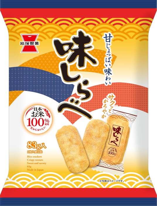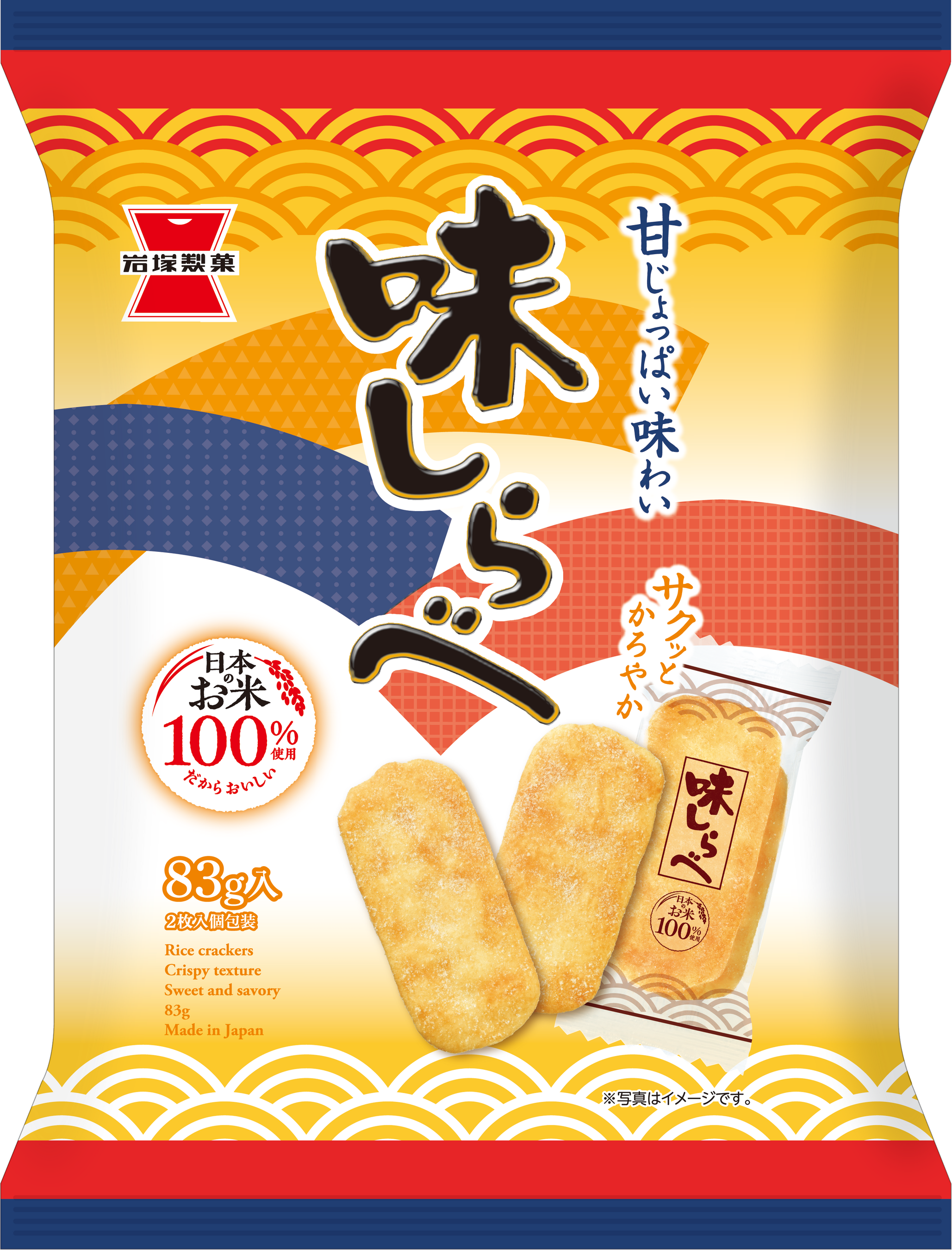 「味しらべ」は、岩塚製菓を代表するロングセラー商品のひとつです。その最大の特徴は、舌の上で溶け出していく甘じょっぱい味わい。粒の細やかなグラニュー糖と粉末醤油が溶け合うことで、繊細かつ奥行きのある美味しさを生み出しています。もう一つの美味しさのポイントは、おせんべいの生地にもあります。岩塚製菓の他のおせんべいと同様に、「味しらべ」にも日本のお米を100%使用。お米本来の味をご堪能いただけます。
