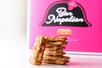昭和バブル期の1980 年代にアマンドで人気を博した生ケーキ「ナポレオンパイ」の味わいを全国にお届けしたいとの思いから2022年に誕生した焼菓子。サクサクのパイ生地にホワイトチョコクリームとフリーズドライのいちごをサンドした、食感も楽しめる一品です。パッケージには、ナポレオンパイの名前の由来とされるナポレオンハットとアマンドピンクを基調に、「かわいらしい皇帝(ボン・ナポレオン)」として デザインしています。