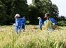 酒米の稲刈りをした大潟町小学校の6年生=上越市柿崎区水野
