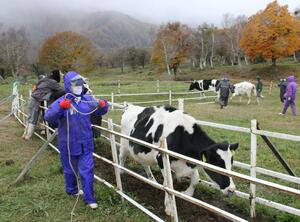 今年の放牧は6月上旬に始まり、上越市などから計68頭が運び込まれた。JAえちご上越によると、猛暑だった今夏も一帯は過ごしやすく、餌となる牧草の生育が順調だったことから牛の体重は平均20〜30キロ増えたという。