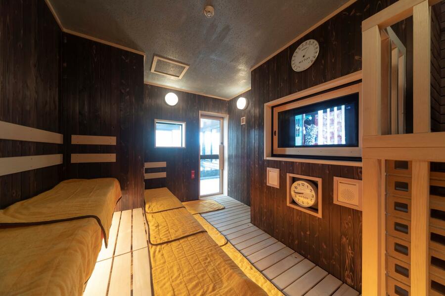 『ドーミーイン大分』 天然温泉大浴場「白糸の湯」大浴場(男湯)(左)・高温ドライサウナ(右)