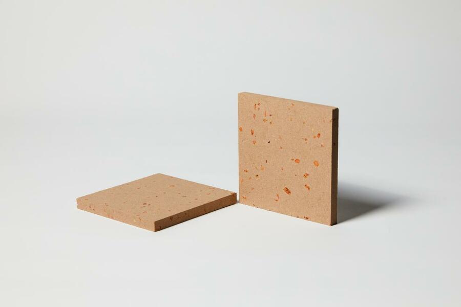 )という素材も2024年に開発しました。セメントやパルプを使い、これまで処分されてきた籾殻の炭などを混ぜ込むことで、再び価値のある素材に変えていく取り組みです。作られた素材は、意匠材として内装、外装で使っていただけます。特長のひとつは、素材の質感の高さです。