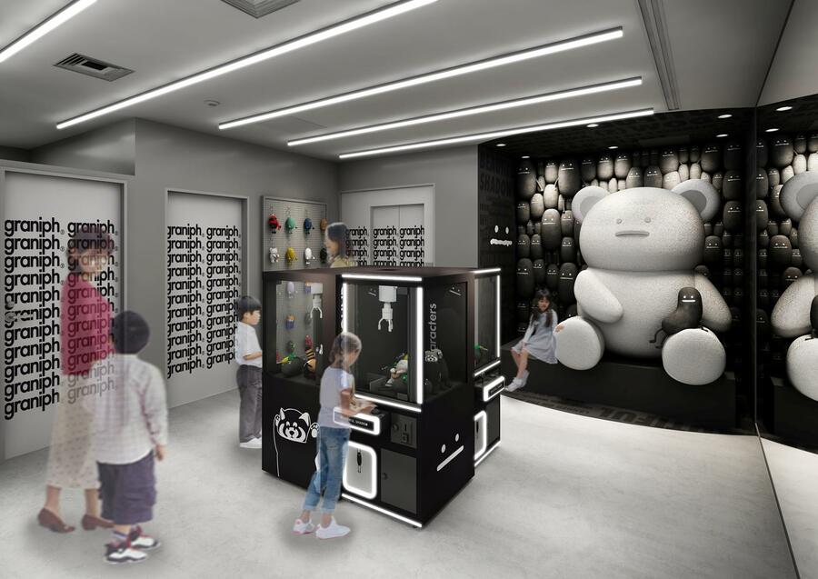 グラニフで初展開となるアミューズメントエリア。札幌限定トイが手に入るクレーンゲームとガチャガチャを設置。ゲームのほか、高さ約2.3mのモコモコビューティフルシャドーと撮影できるフォトスポットや、グラニフのオリジナルキャラクターのデザイナーがペインティングを手がけたアートミラーも登場いたします。