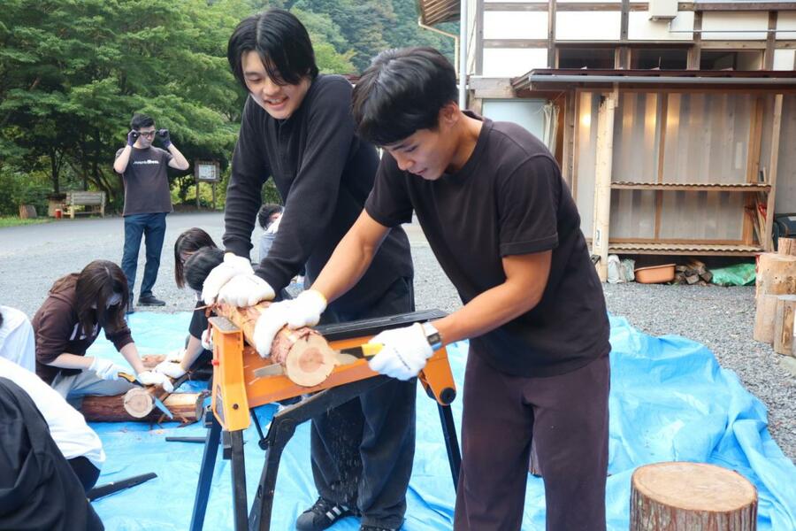 (間伐材を利活用する木工体験)      (学びと実践を踏まえたグループワーク)