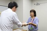 新潟労働局の担当者に要請書を手渡す県労連の寺崎洋子議長(右)=30日、新潟市中央区