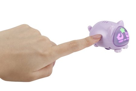体長約6cm で手のひらに乗るほど小さなペットロボットです。小さいながらも人工知能を搭載し、【1】「おあそび」、【2】「おさんぽ」、【3】「うた」、【4】「つうしん」と4つのモードで楽しむことができます。本体や付近の床面をトントンと叩く回数で、モードが切り替わります。