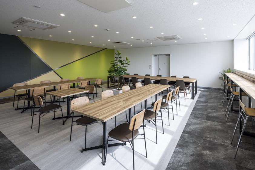1階~3階の全フロアの倉庫部分に空調設備を実装し、働く環境を重視する入居テナント企業のニーズに応えます。また2階には、昼食や休憩などに利用できる35席のラウンジを設置し、テーブル席や窓側のカウンター席を用意することで、使い勝手の良い休憩スペースとしました。従業員に快適な職場環境を提供します。