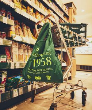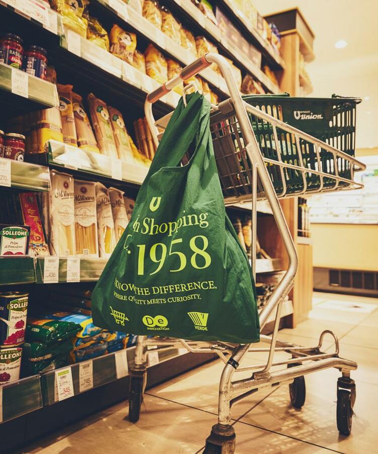 「Union Shopping Club.」の文字を大きく配置し,コミュニティ感を演出。日常使いにもぴったりなエコバッグです。