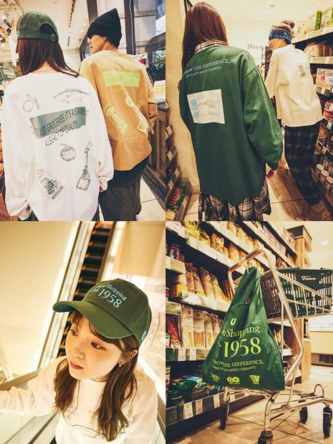 展開する商品は,「Union Shopping Club」という架空のコミュニティをテーマに,ロングスリーブTシャツ(2種),キャップ,エコバッグの計4種類の商品を展開。創業年や所在地をモチーフにしたデザインを通して,「もとまちユニオン」の歴史とスピリットをファッションとして表現しています。