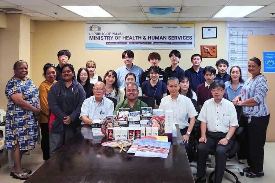 弘前大学(青森県弘前市/学長:福田眞作)では9月8~14日にかけて、学生・役員・教職員をパラオ共和国に派遣しました。この取り組みは、同大の「教養教育海外派遣プロジェクト」の一環で、今回は昨年度に続く第2回本隊派遣となるもの。太平洋戦争末期に激戦地となったパラオで戦争の悲惨さや平和の大切さを学ぶとともに、異文化に触れ多様な価値観を理解することを目的としています。同大の曽我亨研究担当理事(副学長)と医学部附属病院高度救命救急センターの花田裕之センター長、教職員らと学生10名が同国を訪問し、病院等の施設やペリリュー島の戦跡を訪れるとともに、パラオコミュニティカレッジ(PCC)では現地の学生との交流等を行いました。