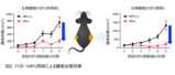 研究グループは、マウスの両側の腹部に大腸がん細胞(MC38)を移植し、右側に大きな腫瘍、左側に小さな腫瘍を作製しました。右側の腫瘍のみにTrigger HIFU治療を実施し、両側の腫瘍体積の変化を観察しました。