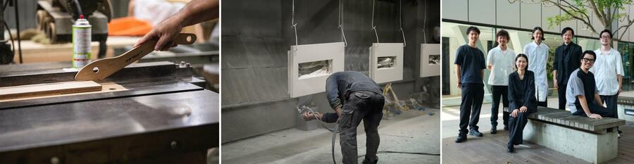 本プロジェクトは、異なるフィールドで活躍する、若手を中心とした社内のデザイナーや制作管理職の7名で構成されています。実際に全国の工場へ赴き、職人の方々と対話を重ねていく中で出会った、試作品や使い込まれた道具など、試行錯誤と工夫の記憶が刻まれた欠片(かけら)を展示します。空間づくりを生業とする、乃村工藝社ならではのメッセージを会場で感じていただければと思います。