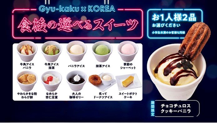 食後は、七輪で炙ってサクサク×ひんやり食感が楽しい『チョコチュロスクッキーバニラ』で、最後まで“渡韓気分”を味わえます。