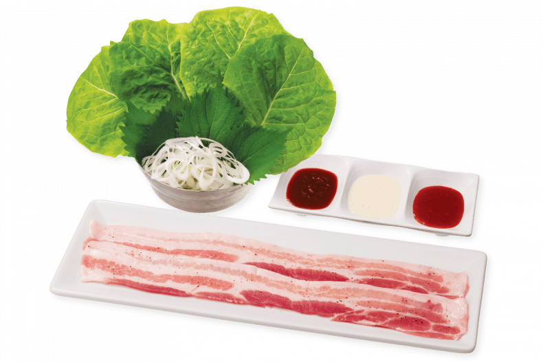 香ばしく焼きあげる豚カルビは、「旨辛ダレ」と「塩胡椒」から選べる2つの味わい。 さらに「サンチュ味噌」「チーズソース」「コチュマヨ」の3種のソースを自由に組み合わせて、包むたびに新しい美味しさに出会える牛角流サムギョプサルです。 “自分だけの最強セット”を見つけてください。