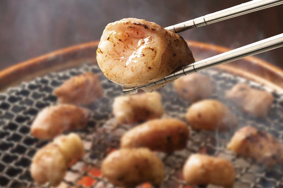 噛めばじゅわっと脂が弾けるマルチョウを、七輪で香ばしく。