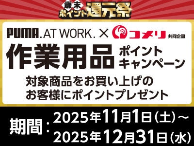 PUMA 作業用品ポイントキャンペーン期間中、対象商品をお買い上げでポイントプレゼント。