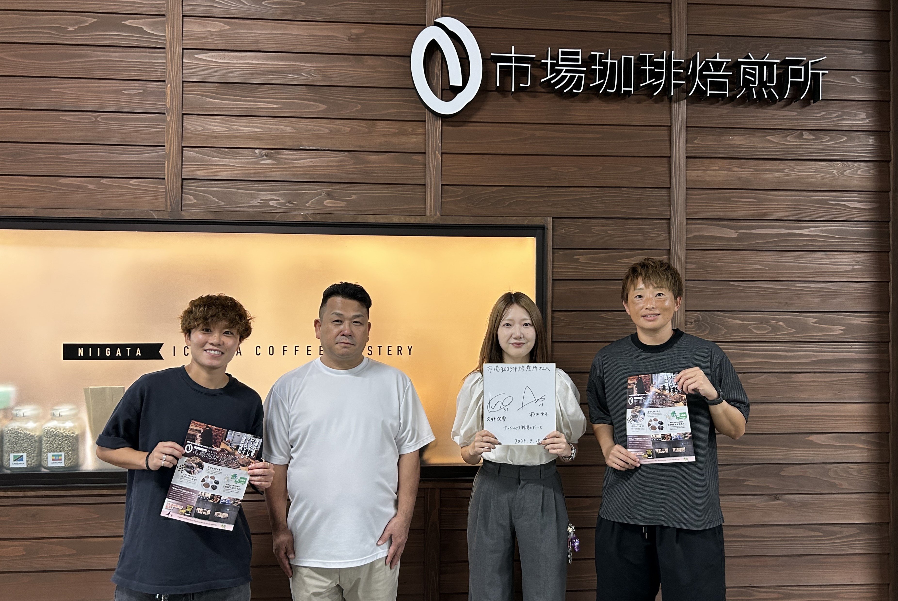 市場珈琲焙煎所はコーヒー豆の選別や焙煎などの業務を行っており、新潟Lのクラブパートナーで、新潟市や新発田市で飲食店などを手がける「enn」(新潟市江南区)が運営している。焙煎所は、障害者の自立・自活を目指して運営をしており、そういった取り組みに共感したクラブが話を持ちかけ、今回のコラボが実現した。