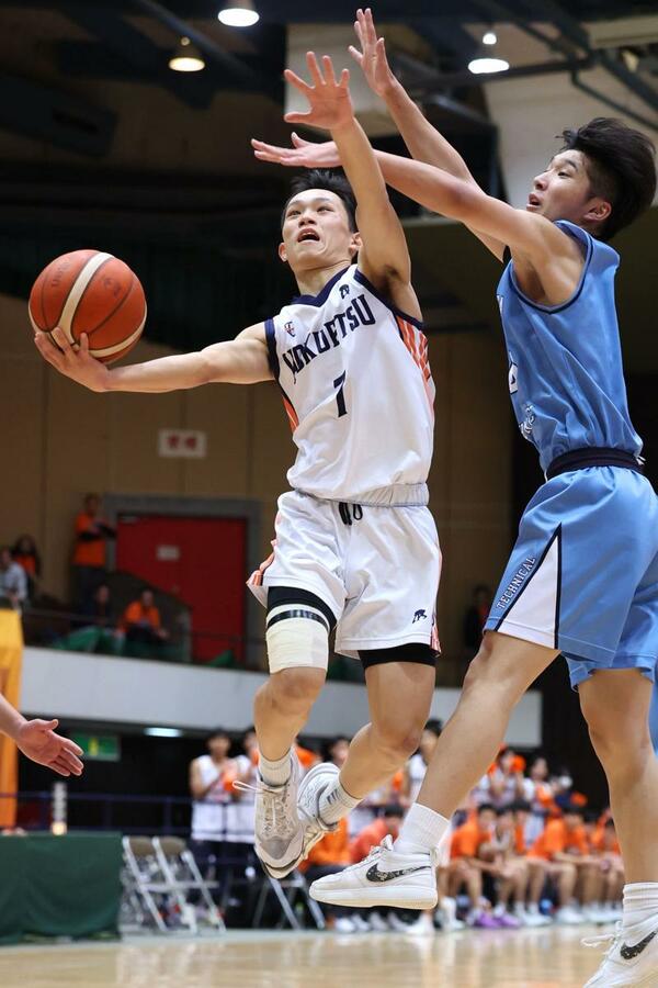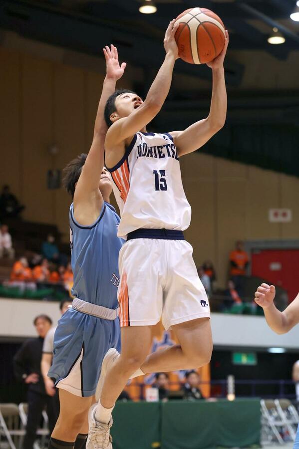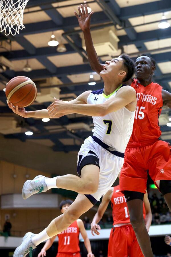 開志国際は、序盤に髙橋歩路が内外からシュートを沈めて流れをつくり、留学生のアジャックもリバウンドからのシュートを何度も決めた。第3クオーター、ホーキンス然が連続得点し、突き放した。