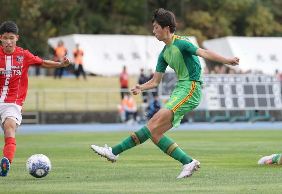 新潟明訓は開志学園JSCとの点の取り合いを制し、5-2で逆転勝ちした。開始直後に先制されたが、サイド攻撃からMF井上怜乃、FW井上翔真の連続ゴールで逆転した。2-2で迎えた後半は、井上怜が勝ち越し点を奪い、終盤にも突き放した。