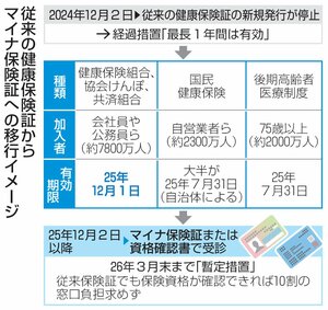 社会 くらし 会社員や公務員らの従来型保険証、有効期限が迫る…12月2日以降は「マイナ」利用が基本に 利用率は上昇も、浸透は道半ば 2025/11/3 10:00 会社員や公務員らの健康保険証(従来型)はあと1カ月で有効期限が切れる。新規発行が昨年12月に停止され「最長で1年間は有効」としてきた経過措置が12月1日に終了するためだ。期限切れの対象は... 残り1311文字(全文:1405文字) ここから先を読むには 続きを読む(会員登録する) 続きを読む(ログイン) 新潟日報朝刊を購読していますか? はい いいえ トップページで最新情報を見る 関連ニュース 障がい者の雇用促進へ情報交換会 新発田市でハローワークと支援機関 7:00 オーナメント作ってわくわくクリスマス! 長岡市で小学生向けに... 12/24 スキー神社(妙高)で安全祈願祭 妙高高原こども園の園児も参加... 12/24 年の瀬を前に、県フードバンク推進協に寄贈相次ぐ レトルト食品... 12/24 サンタが病室にやってきた!?阿賀野市の市民病院で院長らが仮装... 12/23 ふわふわ甘~い♡新潟市西区の全小学校で「いもジェンヌ」給食 ... 12/23 大糸線の絶景をカレンダーで紹介 糸魚川市観光協会などで販売、... 12/23 雪国でも「ペロブスカイト太陽電池」で脱炭素へ!新潟市が東大先... 12/23 アスリートに与える心理面の重要性を強調 柔道女子五輪連覇の谷... 12/23 上越市で「ローカル5G」考えるフォーラム開催 除雪機の遠隔操... 12/23 ゴミ削減をどう実現するか 佐渡で循環型社会を考える講演やパネ... 12/23 コメの学習成果を発信 新潟東区・木戸小5年生が「お米フェスタ... 12/23