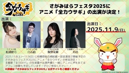 昨年大好評の声優ステージが帰ってきた!今年は「1000ちゃん」から"新田恵海"さん、”白石稔”さん。アニメ「全力ウサギ」から”松浦愛弓”さん、”飯野茉優”さん等々が勢ぞろいで会場を盛り上げます!