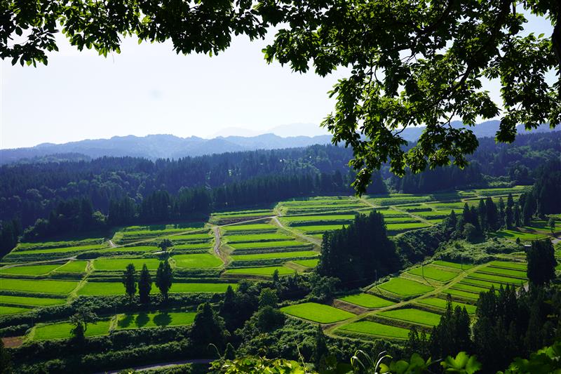 棚田は美しい景観だけでなく、大雨時に雨水を一時的に貯留し、河川や排水路への急激な流出をすることにより、下流域の洪水被害を軽減する働きや、農業が営まれていることにより、土壌が安定し、土砂崩れのリスクが軽減されるといった効果があり、地域の防災インフラとしての役割も有しています。また、棚田は寒暖差があることにより、良質な米の生産地としても知られ、特に佐渡や十日町の棚田では、香り高く粘りのあるコシヒカリが育ちます。担い手不足や高齢化が進むなか、「棚田みらい応援団」などの取組を通じ都市と農村の協働による棚田保全を推進することに加え、2025年度を「にいがた棚田みらい元年」と位置づけ、企業や大学との連携を強化、関係人口拡大に向けた取組を推進しています。