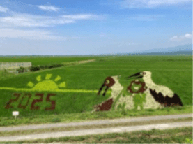 トキの餌場確保と生物多様性の米づくりを目的に、佐渡市認証米「朱鷺と暮らす郷」が作られました。このブランドは、生きものを育む農法を行うことでトキの生息環境を整備していることに加え、おいしさの基準も設けられています。制度開始時から、佐渡市内の全小中学校の給食には認証米が使われており、小中学生が給食のお米を食べることで、トキの生息環境整備を間接的に手伝っています。また、認証米を用いた田んぼアートが毎年実施されています。