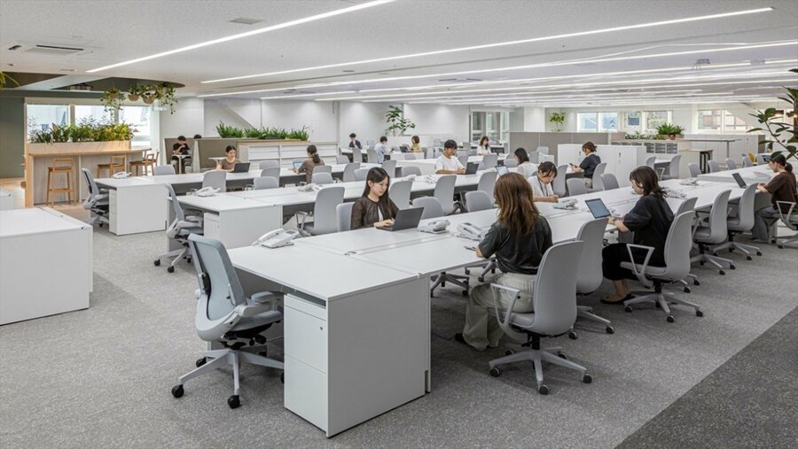 【大無柱空間での自然採光をいかした開放的なオフィス空間】