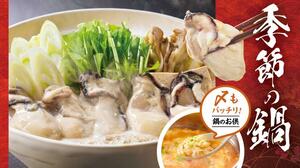 毎年この時期になると、お客様より「楽しみにしている」とお声をいただいています。今年は、大粒牡蠣を5粒使用した「大粒牡蠣鍋」とぷりぷりとした新鮮な国産の牛もつを楽しめる「国産牛もつ鍋」、魚介の旨味を思う存分ご堪能いただける「海鮮鍋焼きうどん」の3つの鍋メニューをご用意いたします。