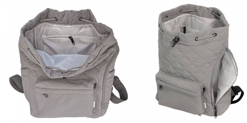 巾着タイプ設計×大きなサイドファスナーで荷物の出し入れの煩わしさを軽減