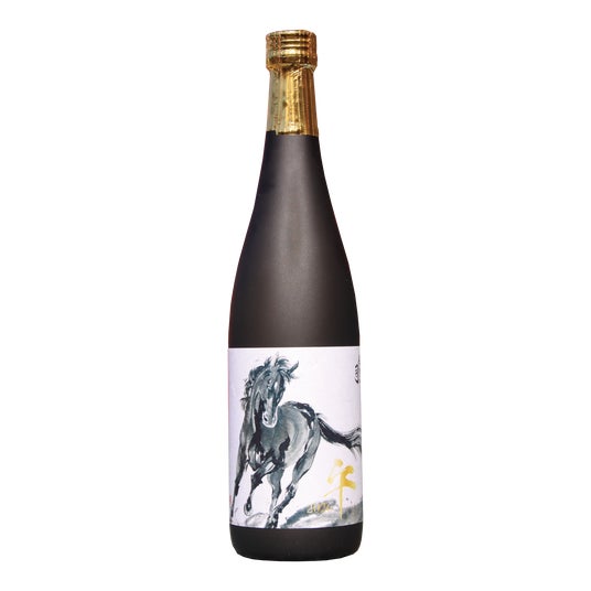 馬(午)は古くから人々の生活に深く関わってきました。「健康」や「豊作」を象徴する動物であると言われ、またその力強い姿やスピード感から神様の乗り物や使者として考えられてきました。そんな大変縁起の良いパッケージに入ったお酒は、穏やかな香りと膨らみのある旨みが特徴の純米大吟醸酒。勢いよく駆け抜ける午のように、皆様が前向きで力強い一年を迎えられますように。